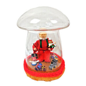 Vintage Pair of Christmas Santa Elf Diorama Under Mushroom Glass Figures are in used, but in good condition. No cracks or scratches or dust build up. Some straw has frayed on the bottom of the Elf Helper on the right.
