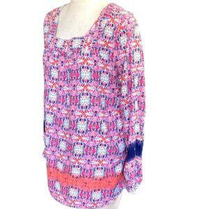 Caffe Marrakesh BOHO Mixed Pattern Peasant Top Sz L Multicolor #106L