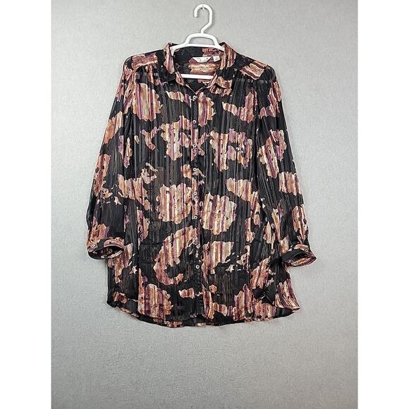 Caffe Marrakesh Black Gold Striped LS Sheer Button Up Shirt Women's Plus 2X