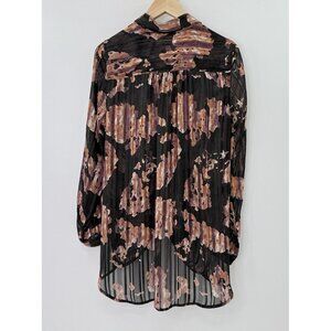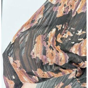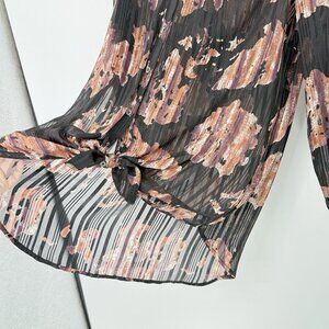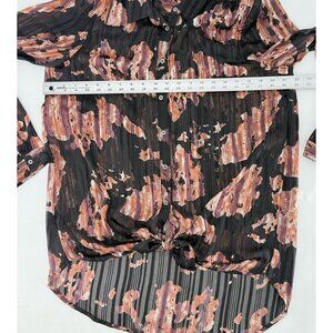 Caffe Marrakesh Black Striped Chiffon Button Tie Front Blouse Size M Preppy