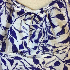 Caffe Marrakesh Blouse Top Sz L Womans Blue Leaf Print Ruffle V-neck Sleeveless