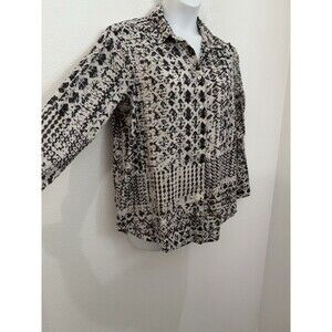 Caffe Marrakesh Blouse Top Womens L Button Up Boho Aztec Western Roll Tab EUC