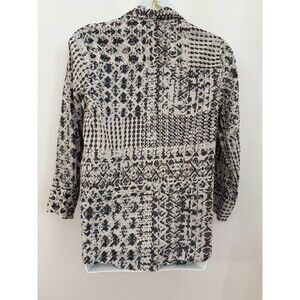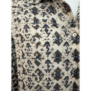 This is a Caffe Marrakesh blouse top for women in size Large featuring an Aztec-inspired pattern with a collared neckline and button closure. The long sleeve top has roll tab sleeves and is made of 100% cotton in a multicolor woven fabric. It has a boho, Western, hippie, colorful, and bohemian style, suitable for both party and casual occasions, designed for all seasons. Made in India. Blouse is in excellent preowned condition with no obvious flaws holes or stains. Measurements and photos. I appreciate your business and strive for a five star rating. Please feel free to message me with questions.