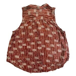 Caffe Marrakesh Womens Large Sleeveless Button-Up Blouse Rust Red & White Boho Print Excellent Used Condition