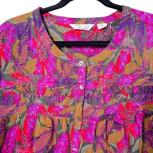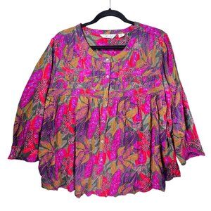 Caffe Marrakesh Peasant Tunic Top Smocked Boho Womens XL Floral Colorful Vibrant
