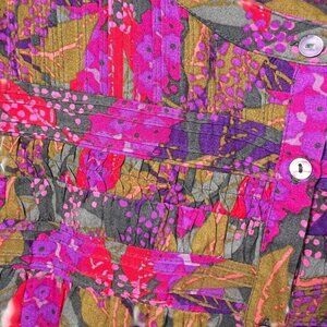 This 100% rayon tunic features a vibrant floral design, button-front detail, and boho-inspired style. Its lightweight, breathable fabric ensures a comfortable fit.