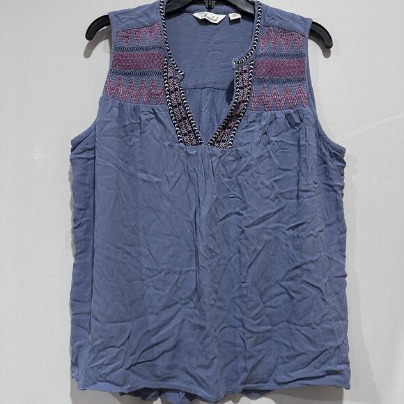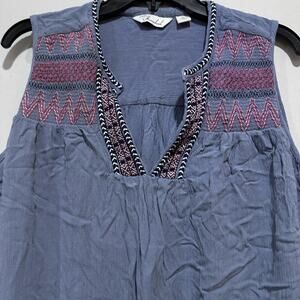 Caffe Marrakesh Shirt Womens XL Blue Pink Embroidered Sleeveless Boho Top