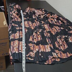 Features: Cafe Marrakesh Black Pink Stripe Metallic Front Button Chiffon Blouse Tunic