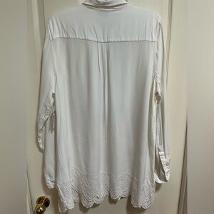Caffe Marrakesh longline eyelet button up tunic blouse top XL Swim Cover Up FLAW