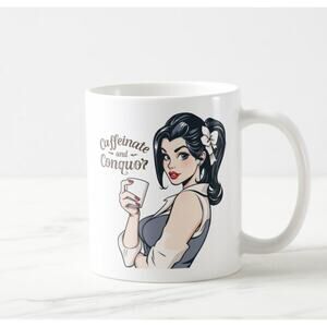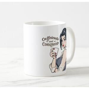 Caffeinate and Conquor Retro Pinup Girl Coffee Mug