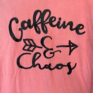 Caffeine & Chaos Pink Short Sleeve Crew Neck T-Shirt Coffee Drinker Top Small