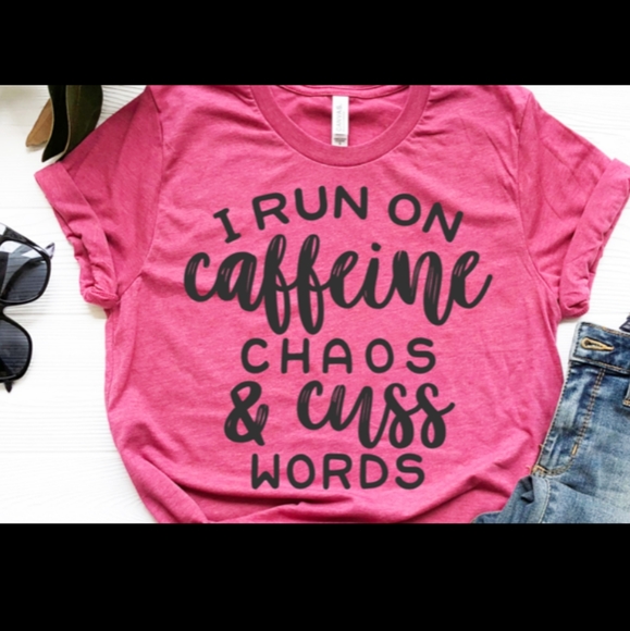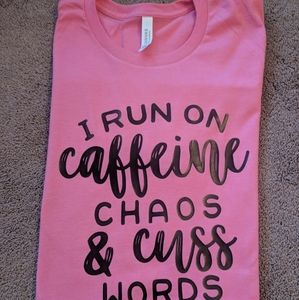 I run on caffeine chaos and cuss words Tshirt. Made when ordered on unisex t-shirt.