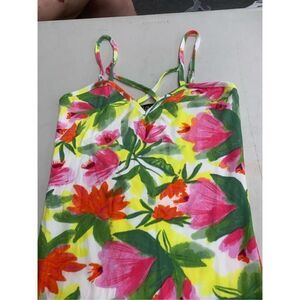 Ladies super cute multicolored floral patterned spaghetti strap cage style detail dress by Love. Excellent condition. Ladies size small. Material is stretchy.