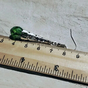 Caged Filigree Faceted Green Crystal Silver Teardrop Earrings Handcrafted