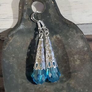 Caged Filigree Faceted Turquoise Blue Crystal Teardrop Earrings Handcrafted