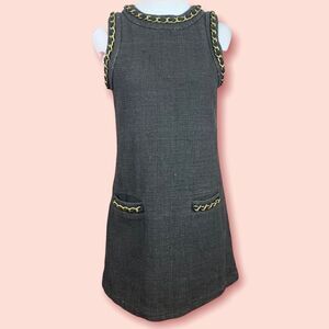 Ca$hmere gray tweed mod style shift dress with chain accents