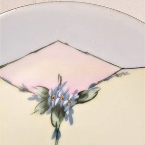 Beautiful rare delicate set of (4) fine bone china 6.5" diameter cabinet plates with pastel purples, greens, yellows, and pink flowers. Hand painted in Chicago at Caine’s Studio and distributed by My Favorite Bavarian. Three are signed by Ritter/Nimer (?). Excellent condition and very pretty. One (1) has a different pattern where it has a green top with flower. This last plate also is marked only with My Bavarian stamp. *Please see all photos as they are part of the description.