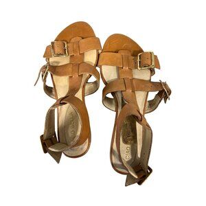 Caio Bella Gladiator Sandals Brown Leather Gold Buckle Womens 8 Flat Ankle Strap