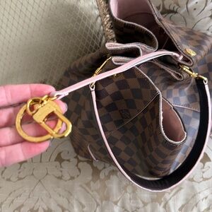 Beautiful authentic Louis Vuitton hobo bag. In good condition has some sights of wear. But nothing that takes away from this beauty. The pink is wore on the handle and on the edges of the bag: the side pink suede shows some wear as well. Also around the top of the bag there is some wear as well. And the inside hook for the keys is separated needs to be glued. All this can be done directly through lv. Or possible a shoe maker. This bag is completely authenticated originally bought from fashion file. I have the original paperwork from fashion file.