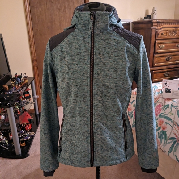 blue coat with grey faux fur lining