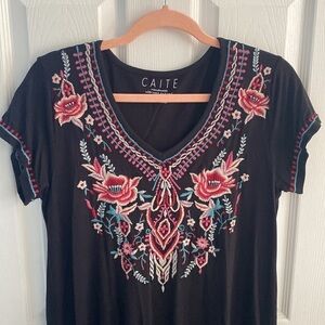 Caite Anthropologie Abby Floral Embroidered boho T Shirt Dress, size small