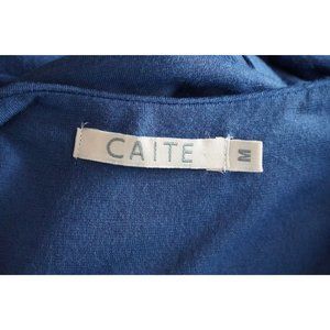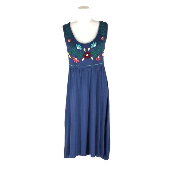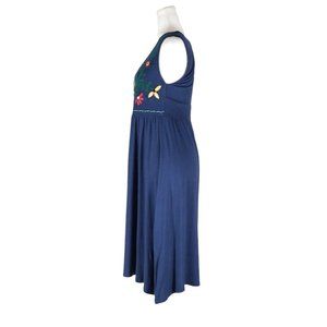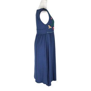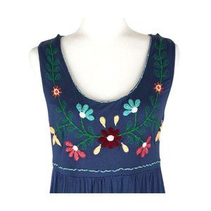 Caite Embroidered Dress Size M Crewel Floral Pattern Blue Sleeveless Knee Length