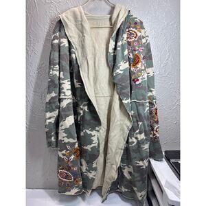 Caite Embroidered Wrap Dark Camo Wren Jacket Pockets Raw Edge Kyla Seo XXL