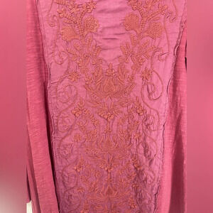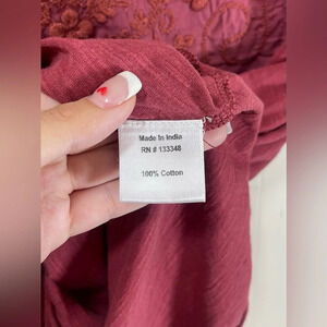 Caite by Anthropologie Embroidered High Low Hem Pullover Blouse Tunic Women’s Size Small. 100% Cotton. Machine washable. Made in India. Has a small mark on the back but the hem (pls see pic).