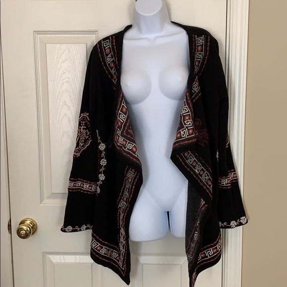 Knit Cotten topper by CAITE with beautiful embroidery in plum, peach and cream. Lightly worn, great condition.