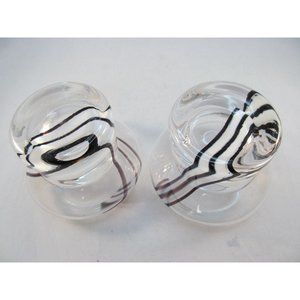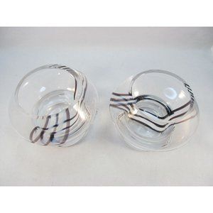 Caithness Black and White Striped Glass Tea Light Holder set of 2