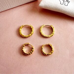 Elevate your earring game with our Hammered Hoop Earrings, a textured twist to the classic hoop design. These minimalist Huggie Hoops are versatile for earlobe or cartilage wear and come in a choice of gold or silver, making them a versatile addition to your jewelry collection!