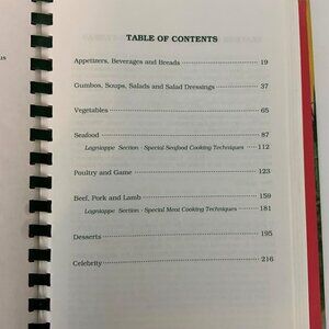 A collection of 262 Cajun recipes, stories, and cooking techniques from Louisiana, featuring seafood, gumbo, and desserts in a spiral-bound format.