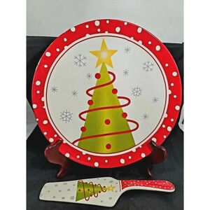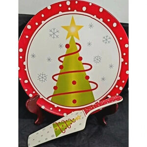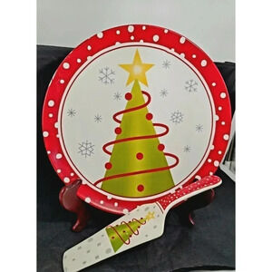 Cake Plate & Server Christmas Seasons Greetings Housewares 11"