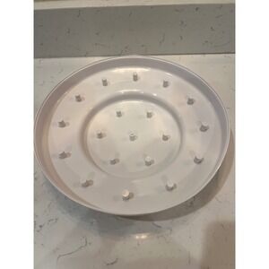 A stylish dessert or cupcake stand, designed with a clean, contemporary aesthetic for elegant presentation. Featuring a tiered design with multiple evenly spaced holes for holding cupcakes or other small desserts securely, this stand is perfect for showcasing treats at parties, weddings, or everyday gatherings. The pure white color ensures it complements any table setting, while the smooth, glossy finish adds a touch of sophistication. This piece is a practical and beautiful way to elevate your dessert display, offering both functionality and visual appeal.