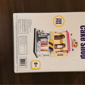 Colorful building set with 269 pieces. Features a cake shop design. Includes vibrant colors for creative play.