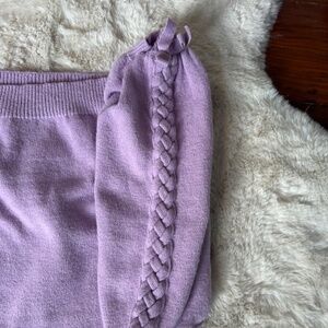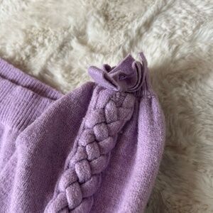 Cute purple cake for dinner sweater with braided sleeves and bows at the end