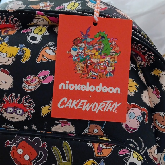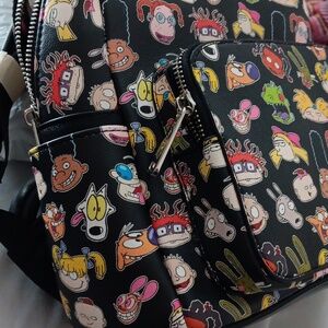 Cute Cakeworthy backpak with Rugrats characters all over bag. Size 9.5 x11 in bag. Brand new. Never used. Tags still on. 2 outside pockets bottle size each side. Front large pocket. Dust bag included.