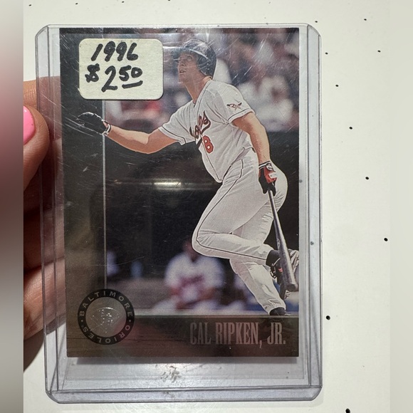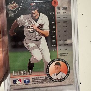 Cal Ripken Jr. baseball card featuring him in action. Perfect for collectors. Cal Ripken Jr. Card 1996 Leaf #21
