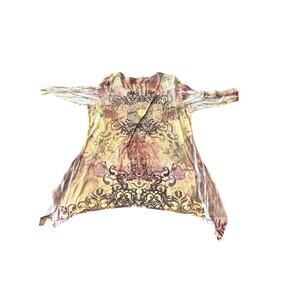 Cal Style USA XL Vintage Y2K Boho Rhinestone Embellished Long Sleeve Top USA