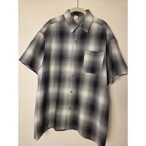 CalTop Shirt Mens XL Gray Plaid Short Sleeve Button Up USA Flannel VTG OG Street