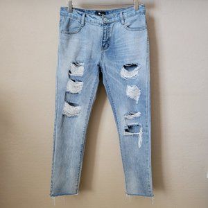 Cala Destroyed Light Wash Raw Hem Boyfriend Denim Jeans