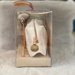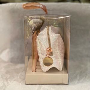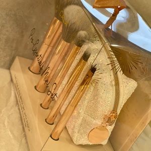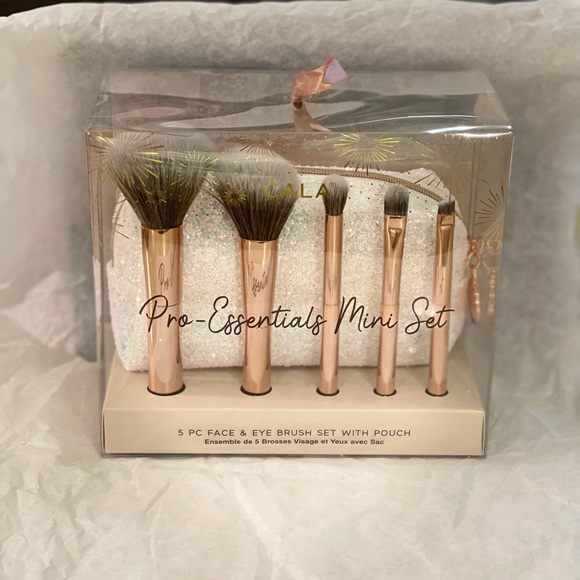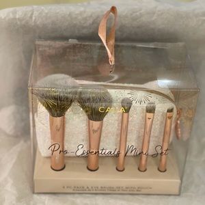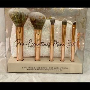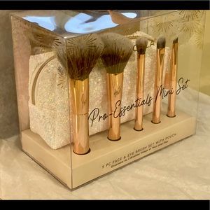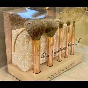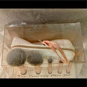 Collection includes: powder brush, blush brush, eyeshadow brush, blending brush, angled brow blush, and pouch.