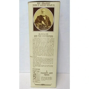 This vintage decanter is hand painted Americana Porcelain. It is empty now but originally contained 4/5-quart straight bourbon whiskey. Historic portraits and paintings were used to create a very accurate sculpture for the bottle. The gold sticker on the back says, “McCormick Straight Bourbon Whiskey 86 proof Limited Edition 4/5 quart Distilled and Bottled by McCormick Distilling Co. Weston, Mo.”
