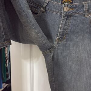 The color of these jeans are grayish. Measurements are about 15 1/2 inches across the waist top to bottom is about 37 1/2 inches and the inseam is about 29 inches and the rise is about 8 1/2 inches.