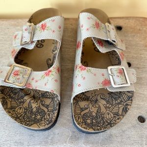 New in the box, never worn, very comfortable, cork sole, can’t be dressed up or down.