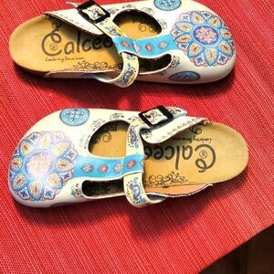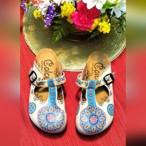 Beige, light blue, yellow patterned colored mosaic flowers.