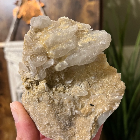 With purchase you’ll receive as shown this beautiful stacked calcite covered with druzy Quartz.