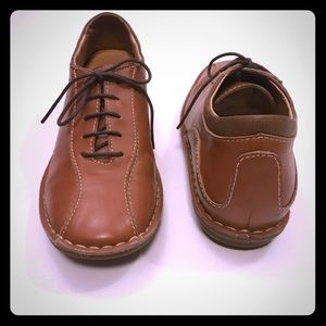 Unisex- men’s size 6 women’s size 8. This is a unique pair of leather shoes. Increases your height to 2 inches, only you will ever know. This well made shoes are soft and comfortable. Size is not marked, I wear men's 7 and it is tight on me. Excellent pre owned condition, does not look used. Please view photos for reference