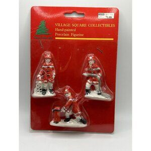 This product is a vintage new in packaging Christmas village collectible figures from Village Square Collectibles by Caldor. The porcelain figures feature three firemen and Santa. Hand painted. Please contact me with any questions.