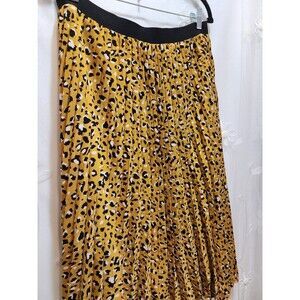 Caleaas Women XL Yellow Skirt Maxi Pleated Cheetah Print Flowy Wild Maximalist